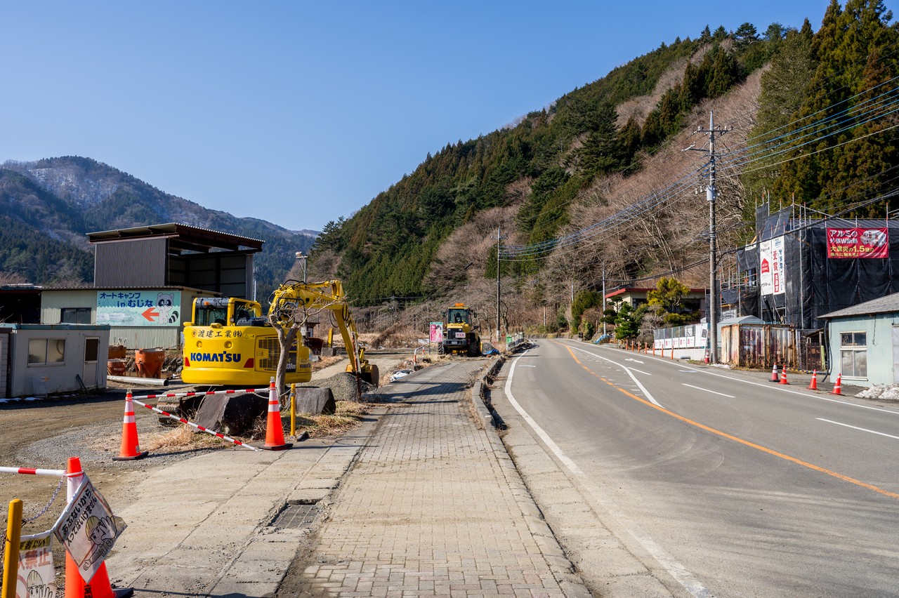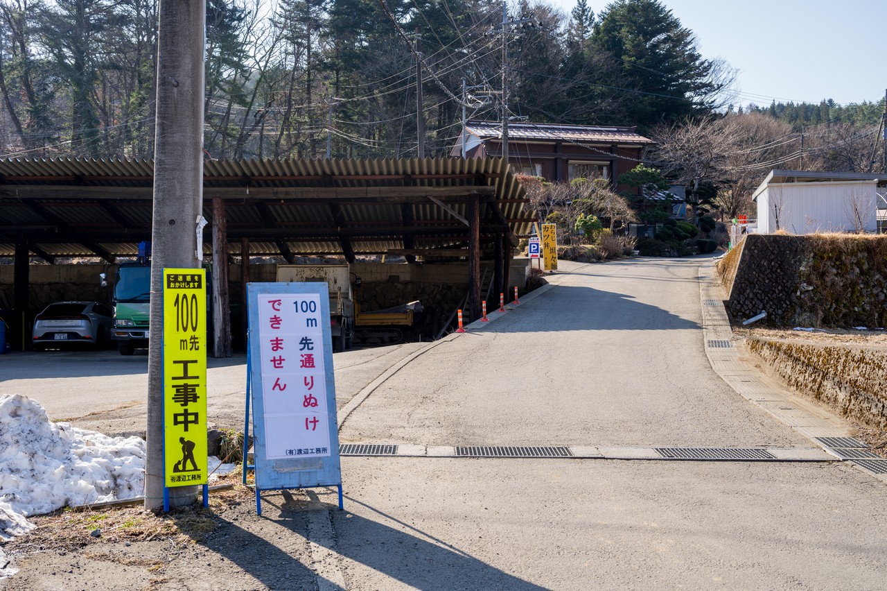 道なりに歩けば良いだけのはずでしたが、間が悪いことに道が工事中で通り抜けは出来ないとの案内が掲げられていました。