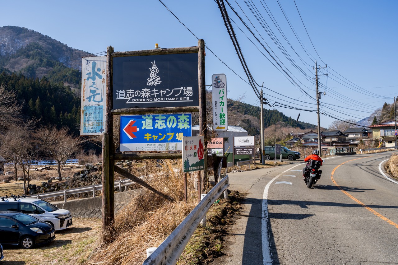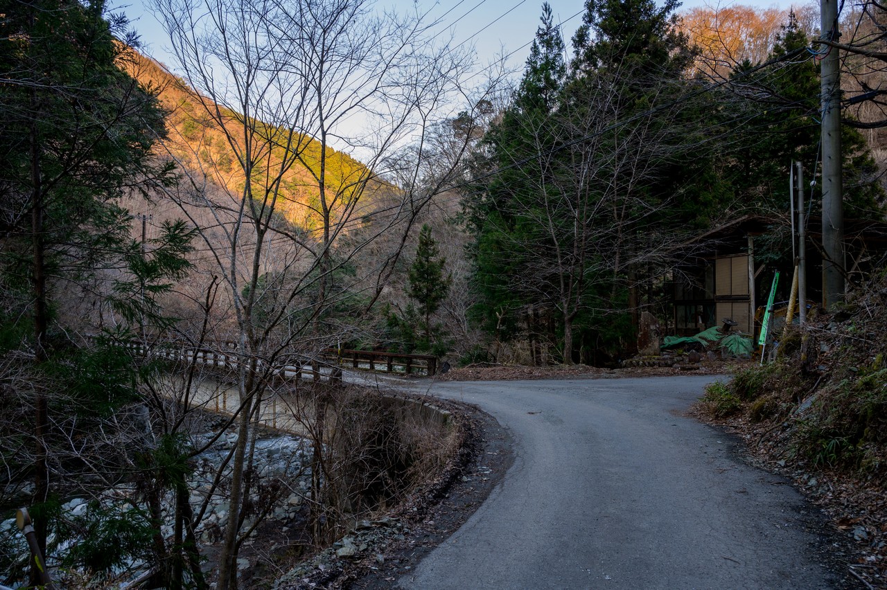 道志の森キャンプ場への案内が現れたところで左折します。迂回によって多少の遠回りにはなりましたが、ここから先はもうずっと道なりに真っすぐです。