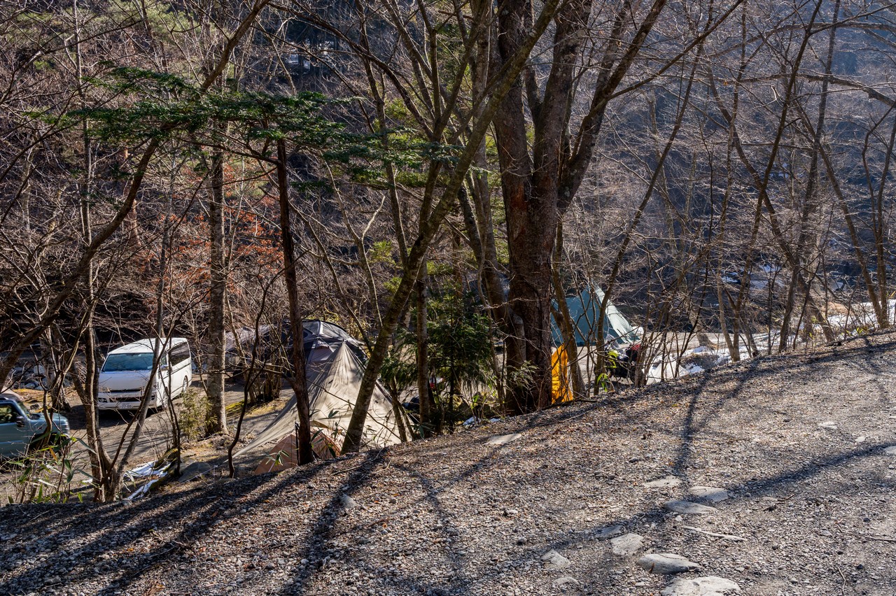 かなり上流の方までテントサイト化されています。私は基本的に登山が絡まないキャンプはしない人間なのですが、川遊びできるのが人気の理由なのでしょうかね。