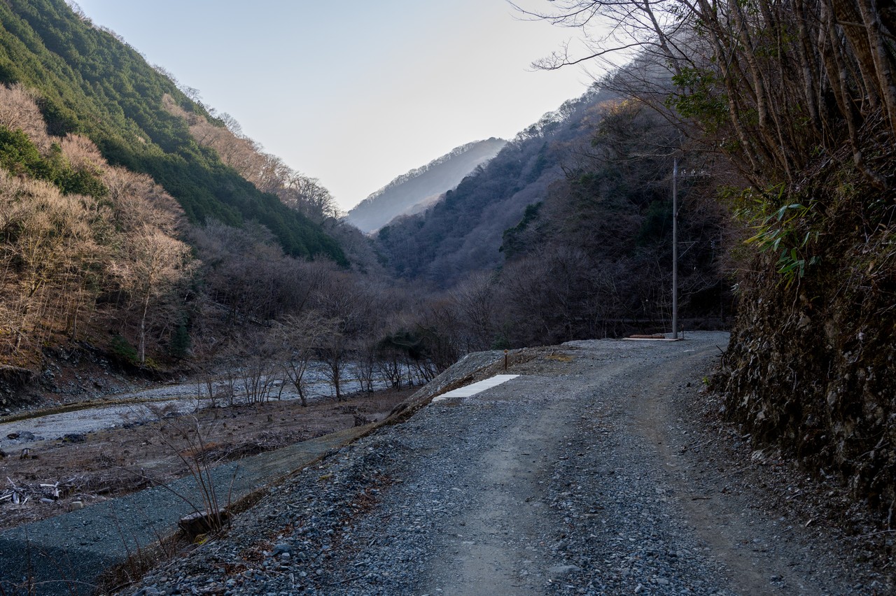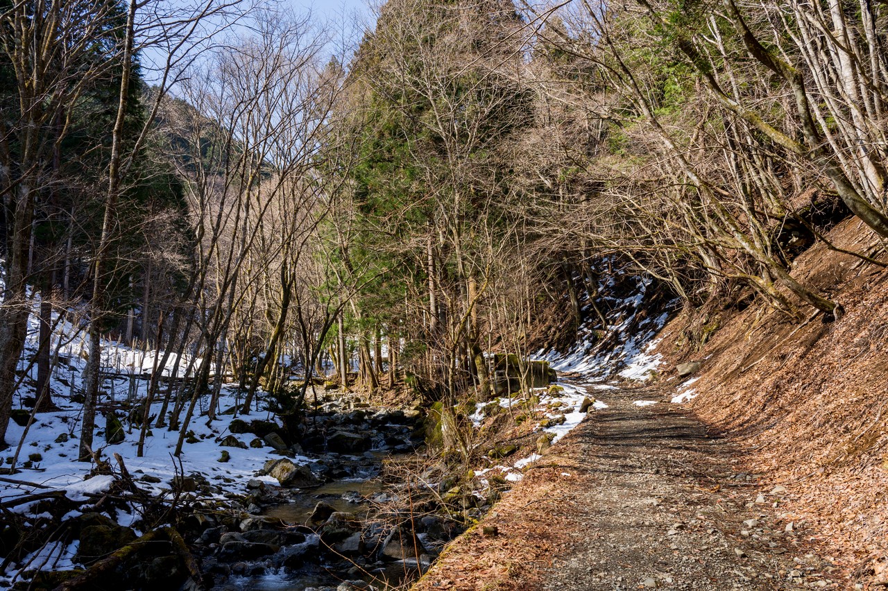 川沿いの道をひたすら上流へ遡って行くのですが、このアプローチの舗装道路歩きはかなり長めです。ウォーミングアップ代わりにはちょうど良く、体が温まって来ました。