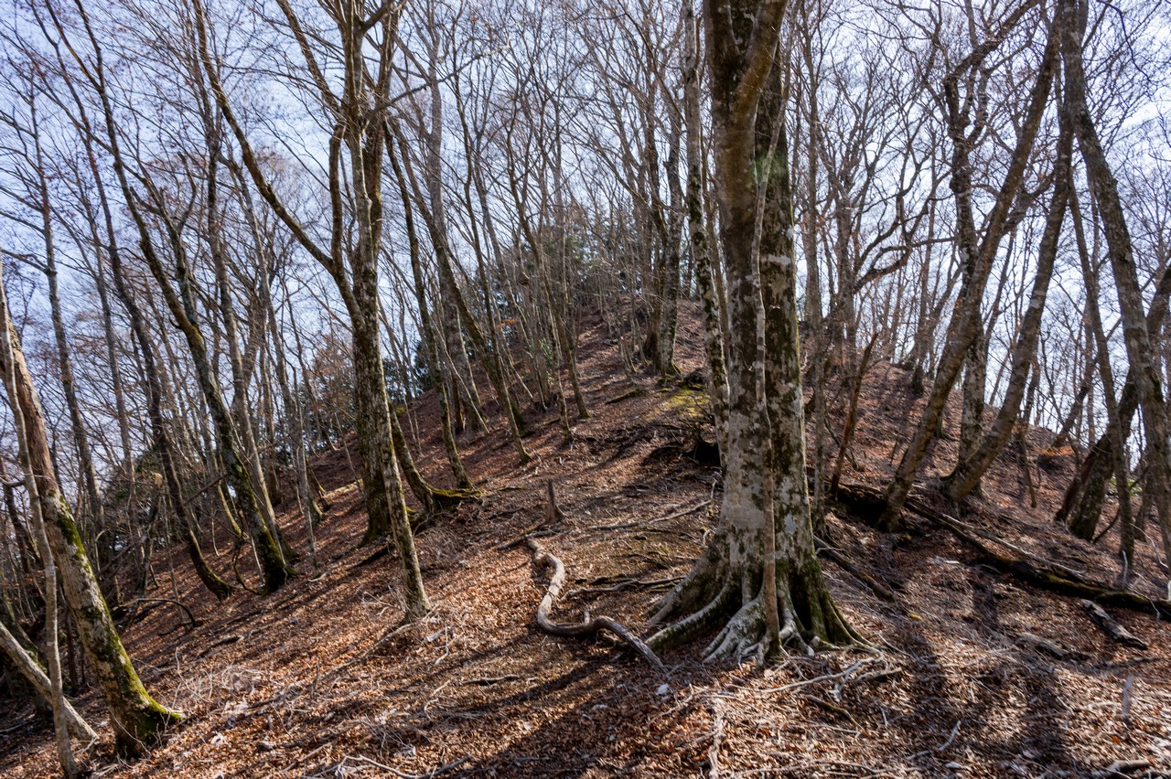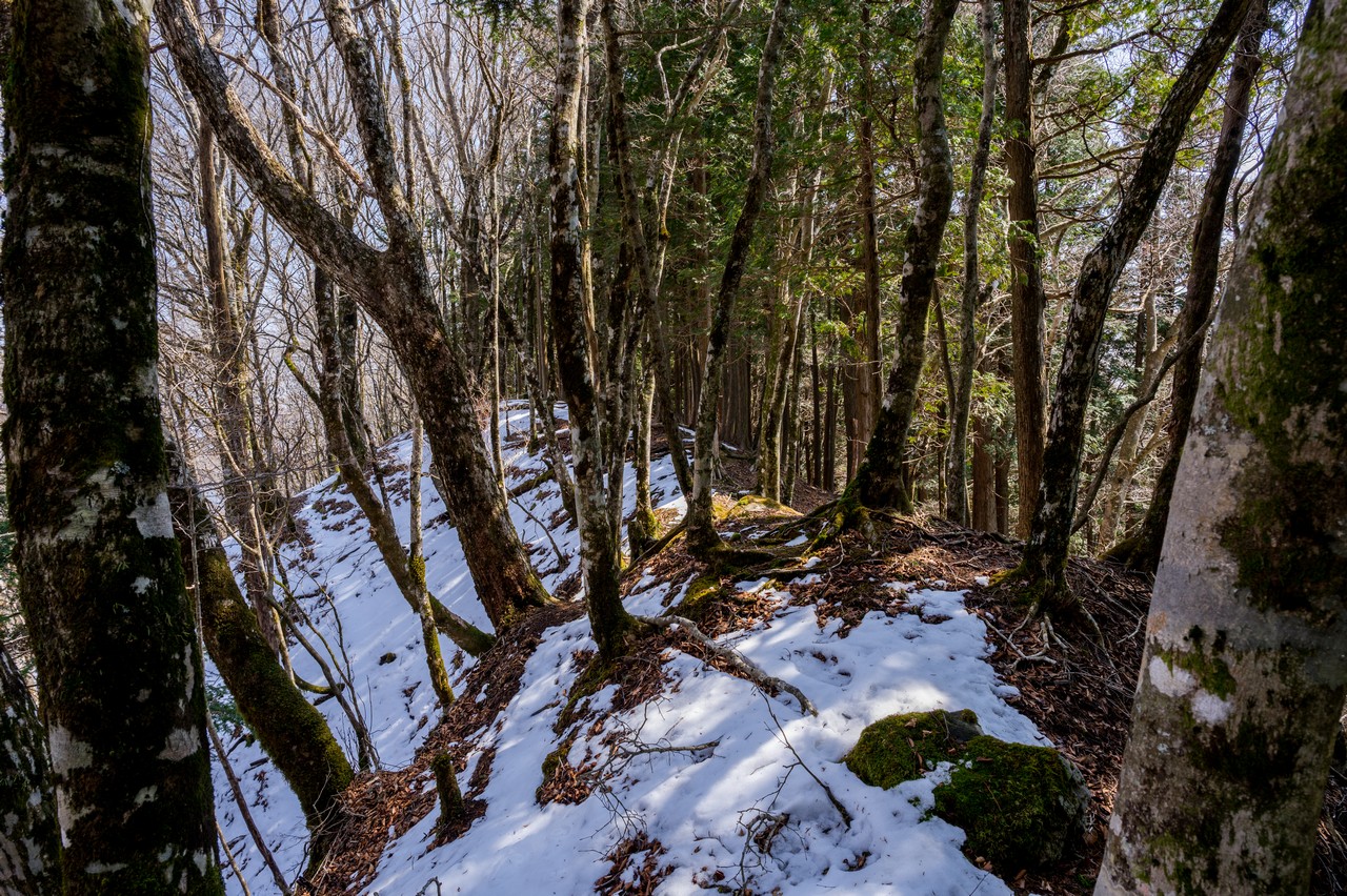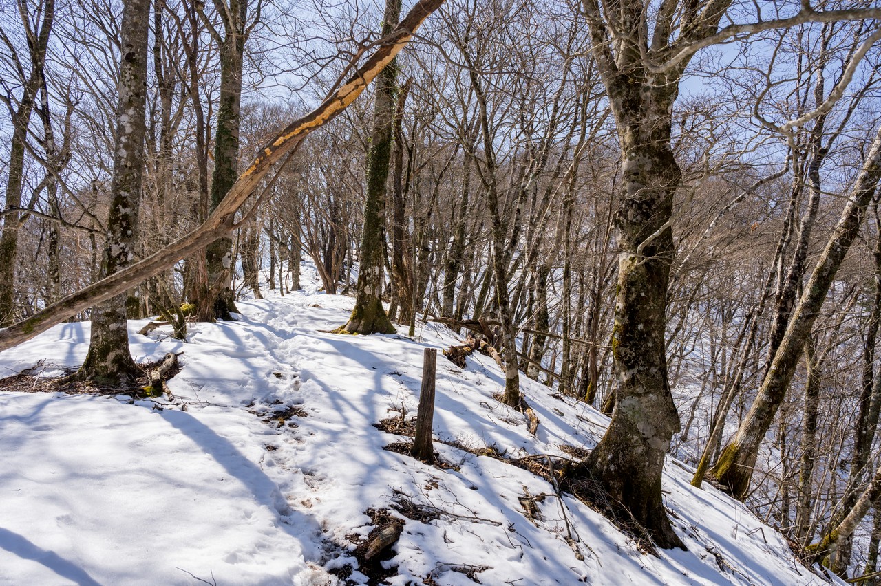 古い切株が並んでいる辺り、かつて人為的な伐採が行われたのでしょう。こんな山の奥深くにまで林業の手が及んでいた事には驚かされます。伐採した木材を搬出するコストも馬鹿にならないでしょうに。