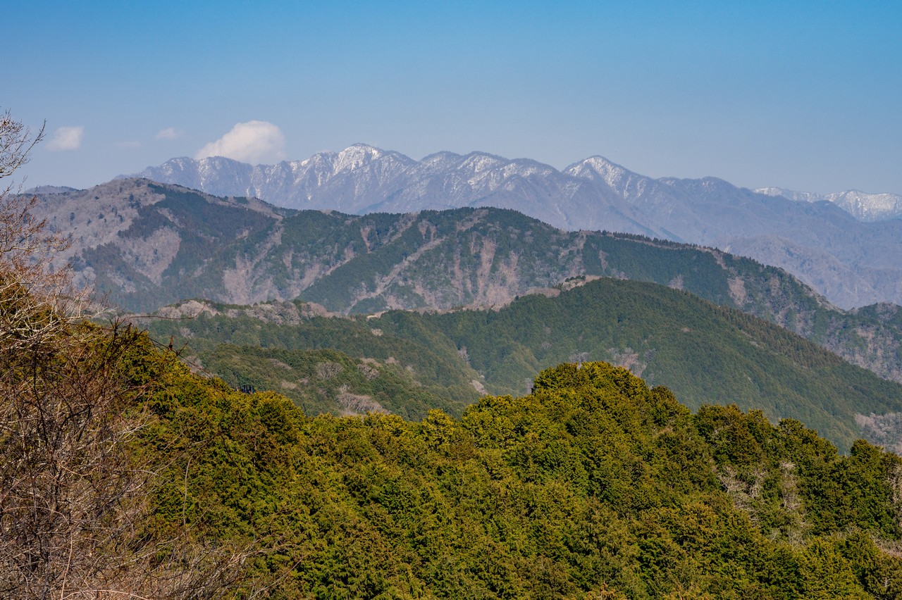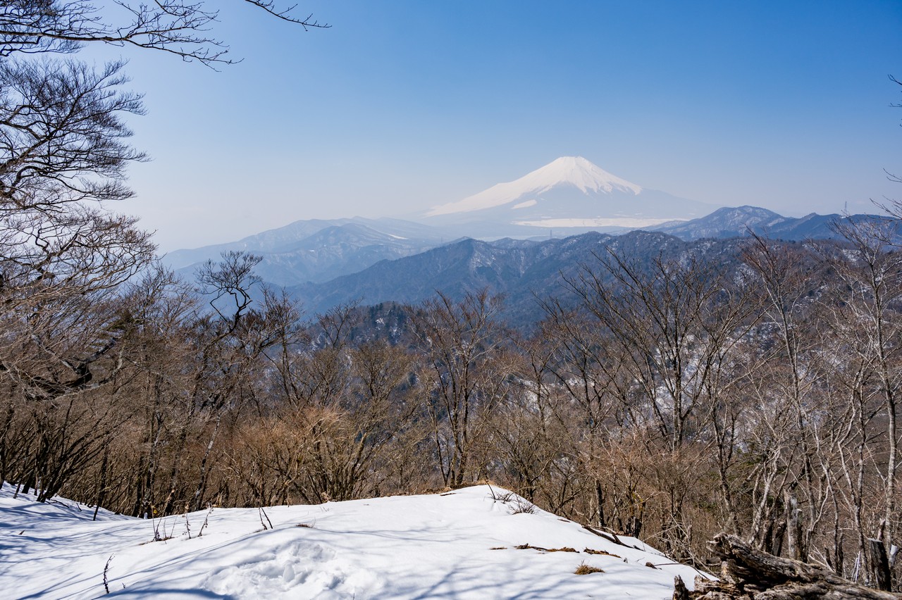 山頂から振り返ってみると、甲相国境尾根からここまで歩いて来た山並みを一望できました。西丹沢に横たわっていた空白地帯を縦断することが出来て、個人的には大満足です。