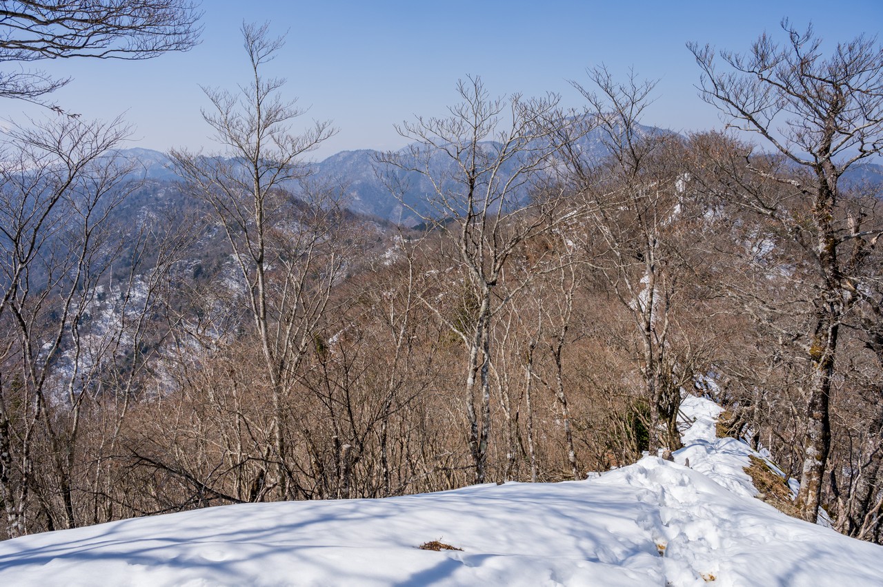 こちらの白く染まった山並みは、檜洞丸(1,601m)と同角山稜かな。西丹沢と言われたら通常は今見えている辺りの山々の事を指すわけですが、そうなると大栂や椿丸がある辺りの事は何と呼ぶべきなのでしょうか。西西丹沢か?