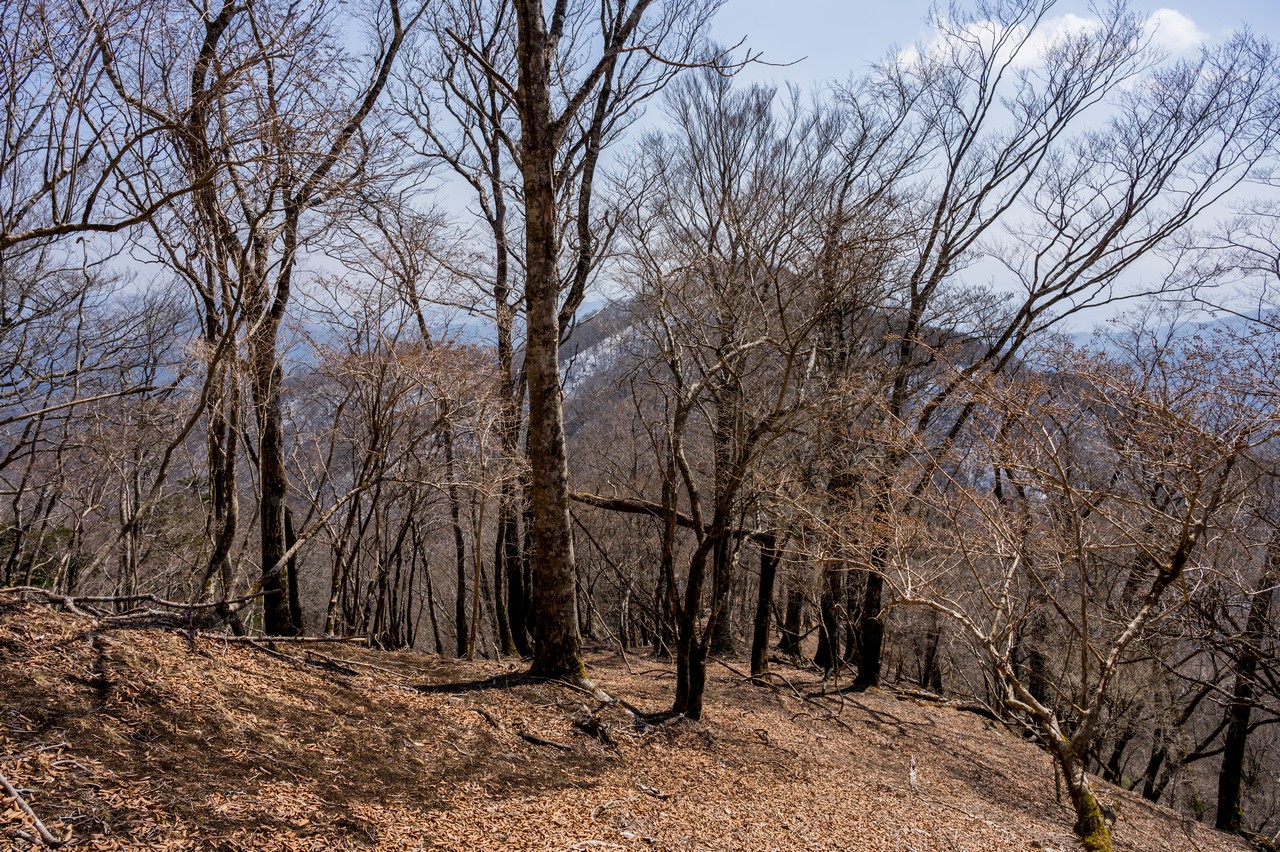 左手に林道らしき道のラインが見えています。西丹沢の最奥部は人跡疎らな領域なようでいて、しっかりと人の手は加わってはいます。尾根上には一般登山道が無いと言う、ただそれだけの事です。