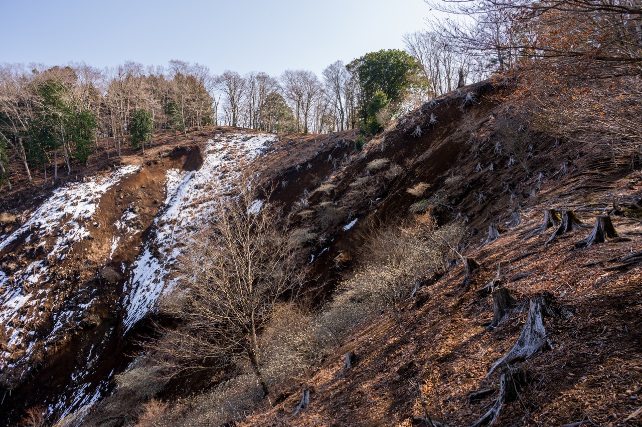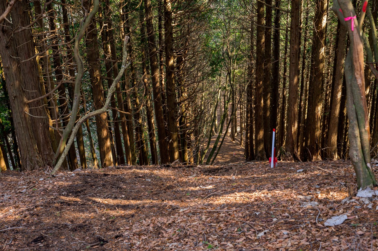 14時 織戸峠まで下って来ました。ここまでの尾根とは違い、明らかに人の手が加わっていることを感じる地形です。