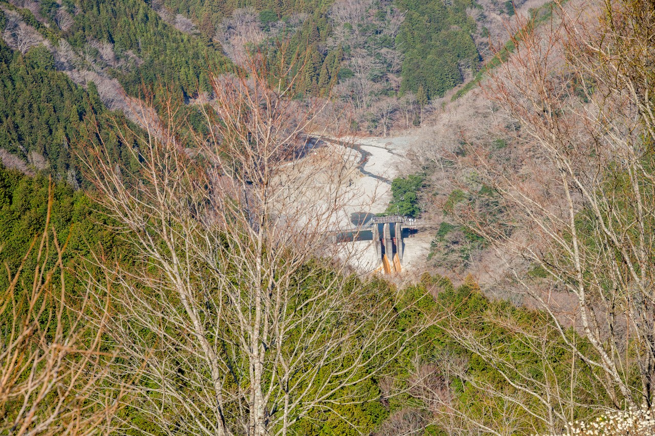 眼下に小さく大股沢ダムが見えています。これからあのダムがある谷底の林道まで下って行く必要があるのですが、まだまだ結構な標高差が残っております。