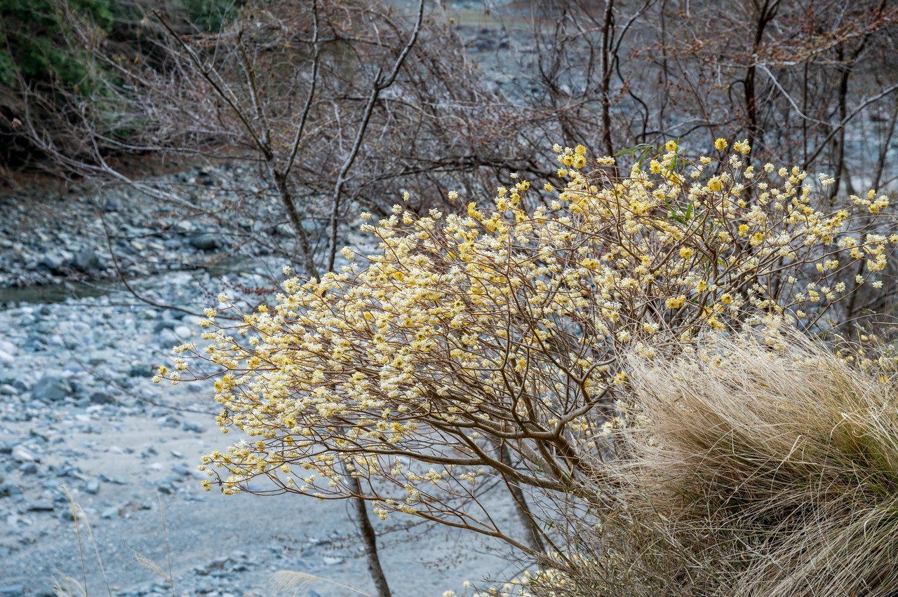 わざわざエルドラドまで出向くまでもなく、ミツマタは丹沢湖の周辺にポツポツと咲いています。