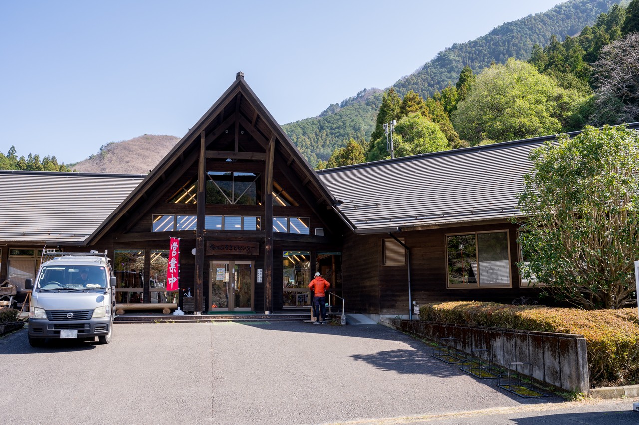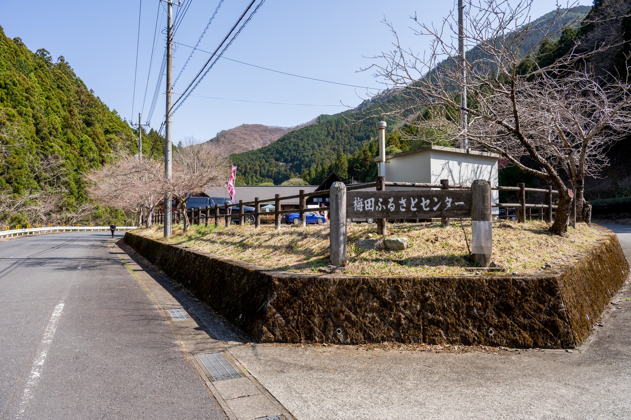 バス停の名称にもなっている、梅田ふるさとセンターです。お食事処兼地元の物産品の販売所といった性質の施設です。屋敷山を往復するのであれば、帰りのバス待ちの時間の調整をするのにちょうど良いかと思います。