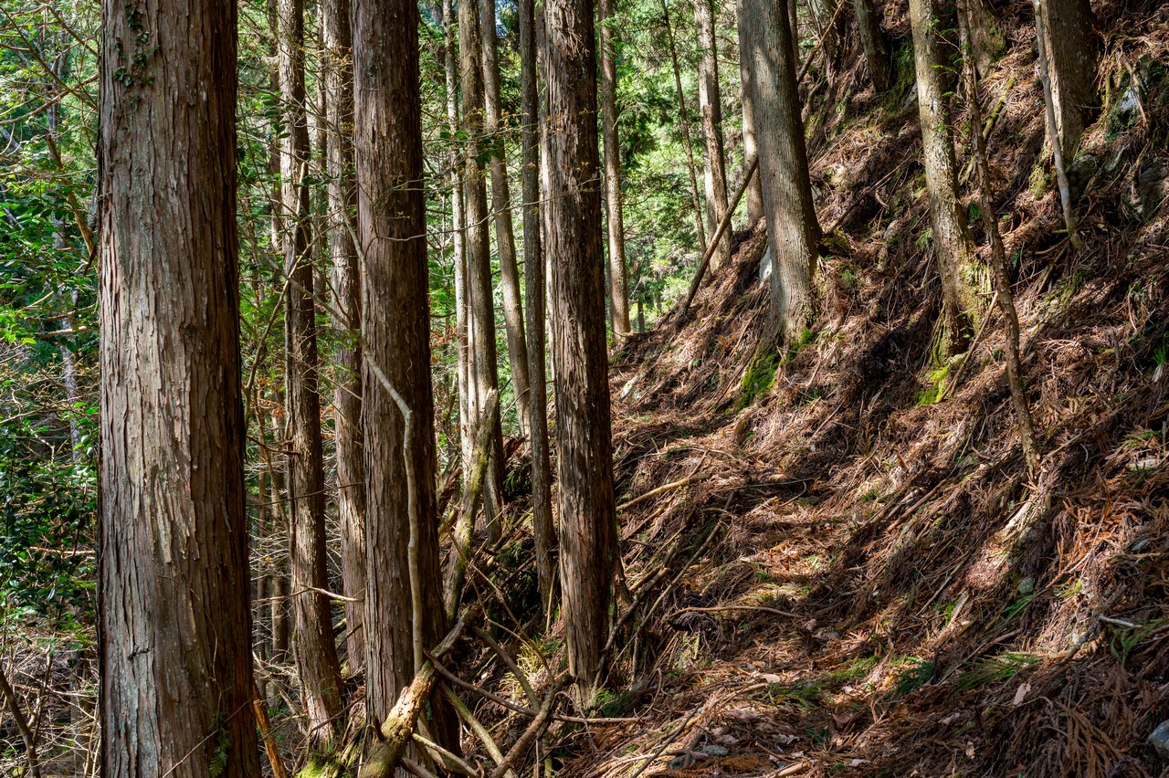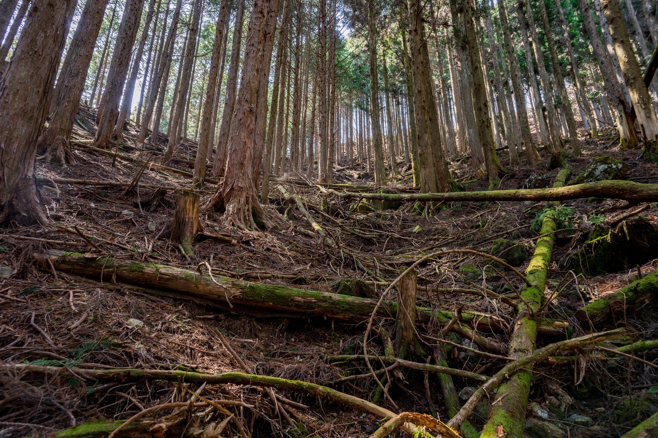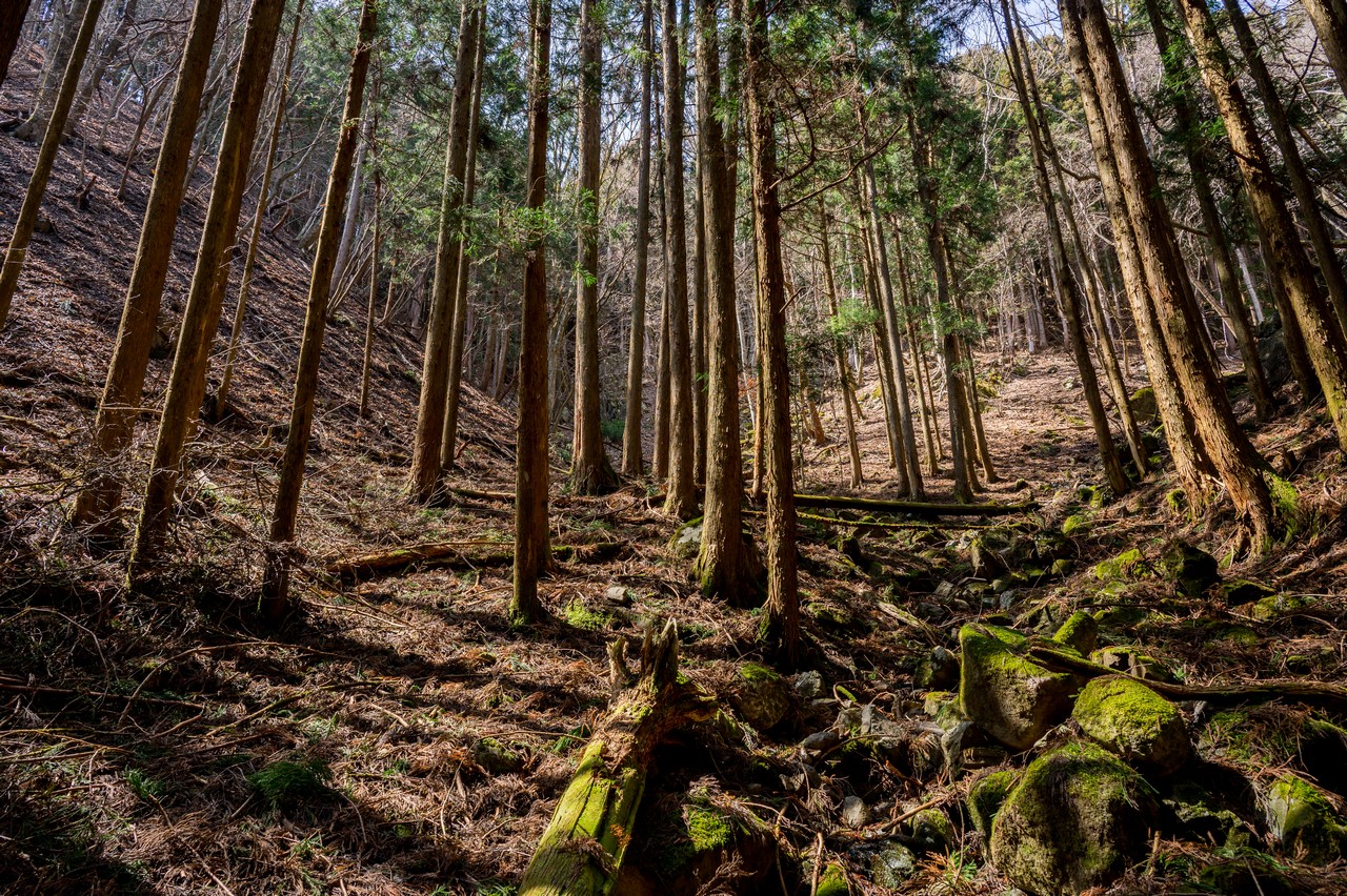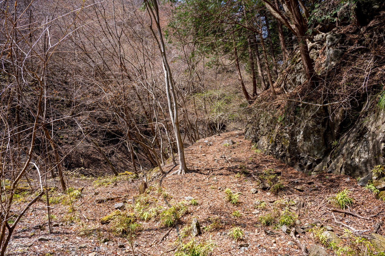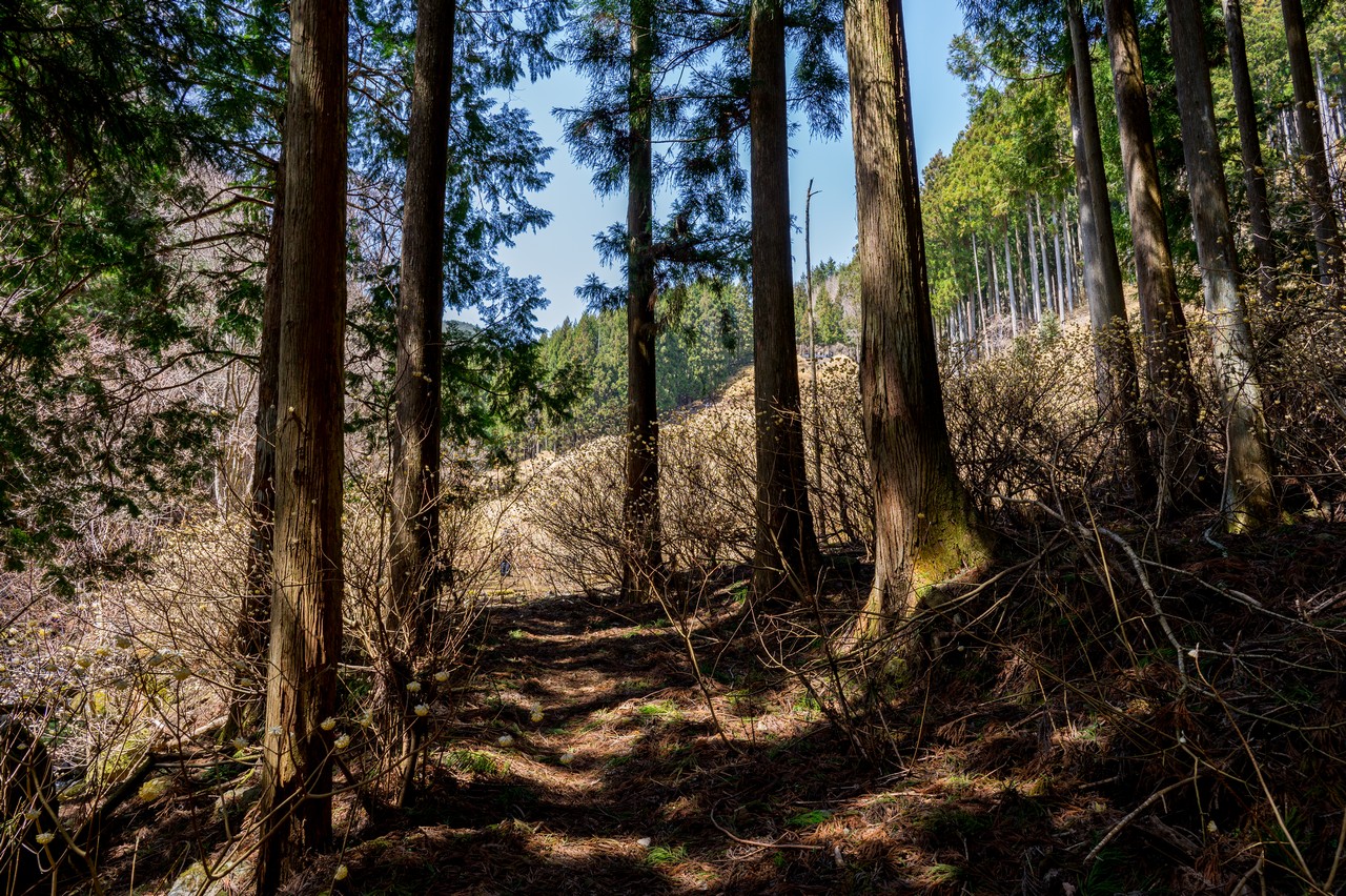 ミツマタの鑑賞を終えた後は、隣接する三境山を越えてわたらせ渓谷鐵道の神戸(こうど)駅まで歩きます。深い考えも無しに決めたルートでしたが、三境山越えでは道なき道を行くなかなかの険路が待ち構えていました