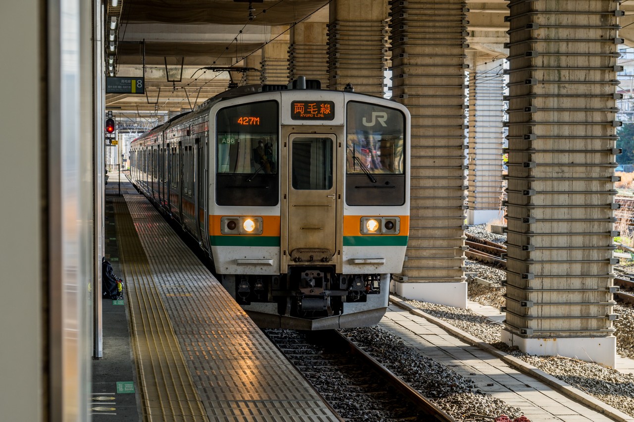 続いて両毛線に乗り換えます。朝の時間帯は学生の利用者が多く、こちらも混雑していることが多いです。
