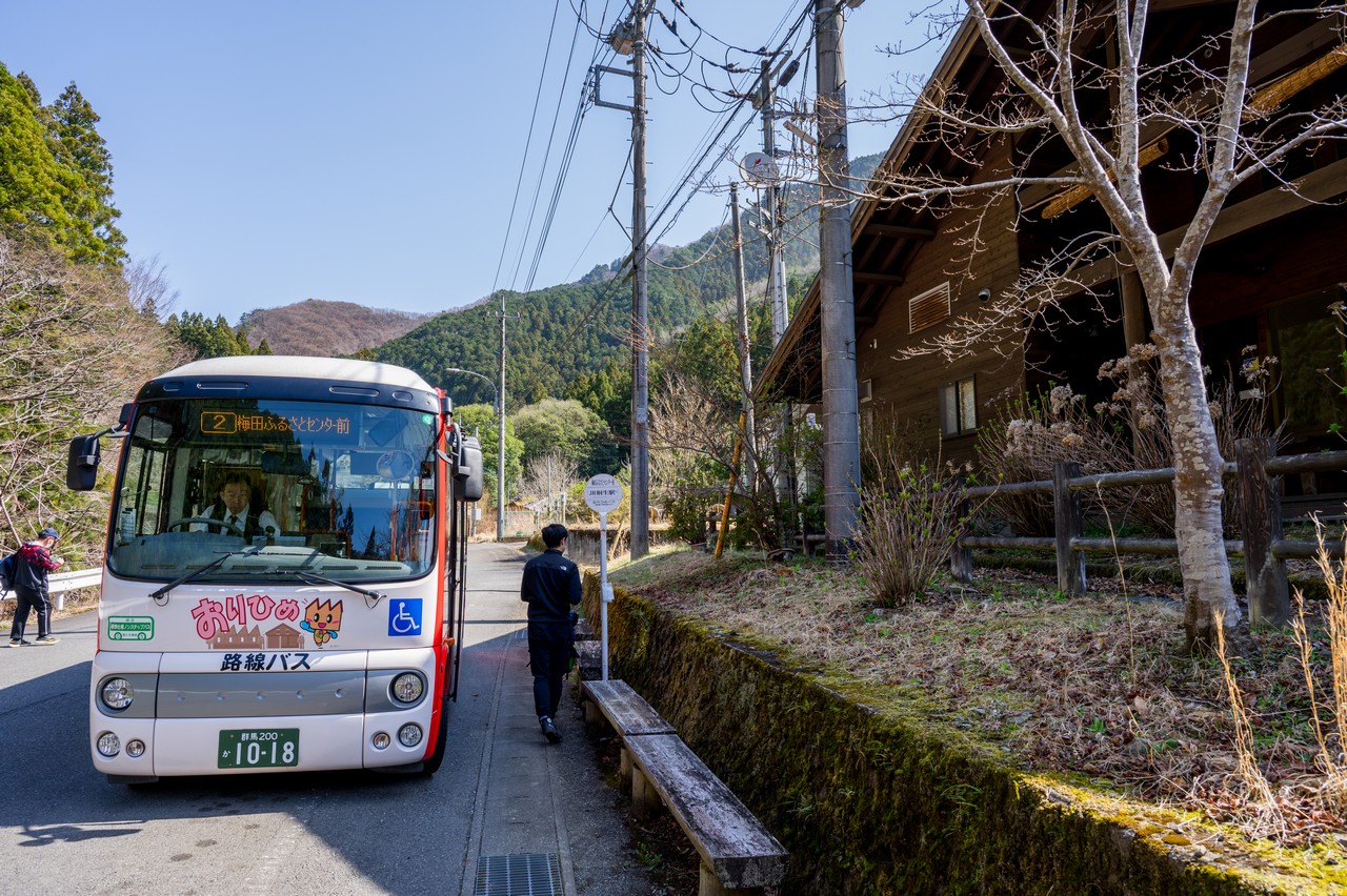 屋敷山は桐生の市街地中心からは遠く離れた場所にありますが、桐生市市営のおりひめバス梅田線を利用することによって、一応は公共交通機関による訪問が可能です。