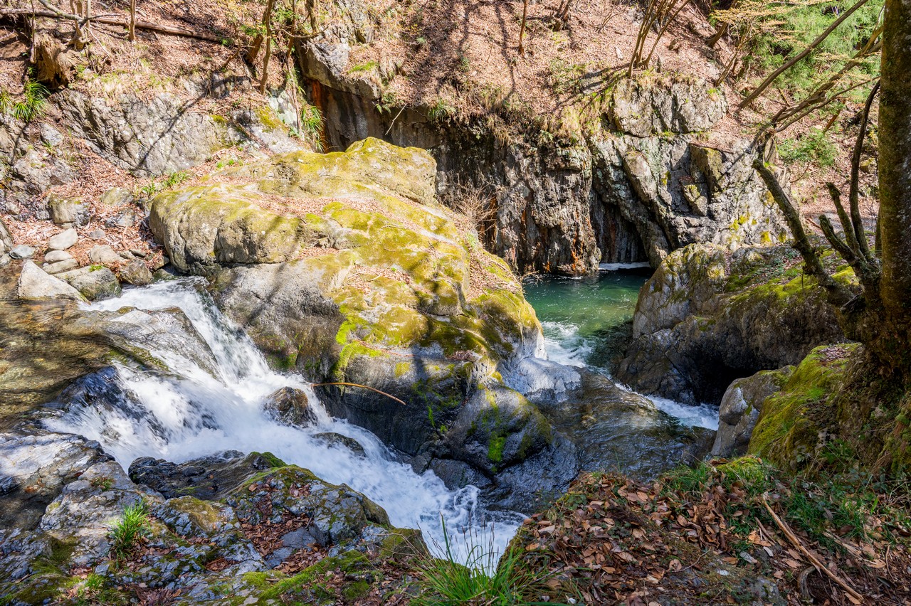 このゴルジュ帯は千代ヶ渕と呼ばれています。それこそ全国各地にある~渕と言う地名の例に漏れず、大昔にお千代さんと言う人物が転落して溺死したという悲劇の伝承が残っています。