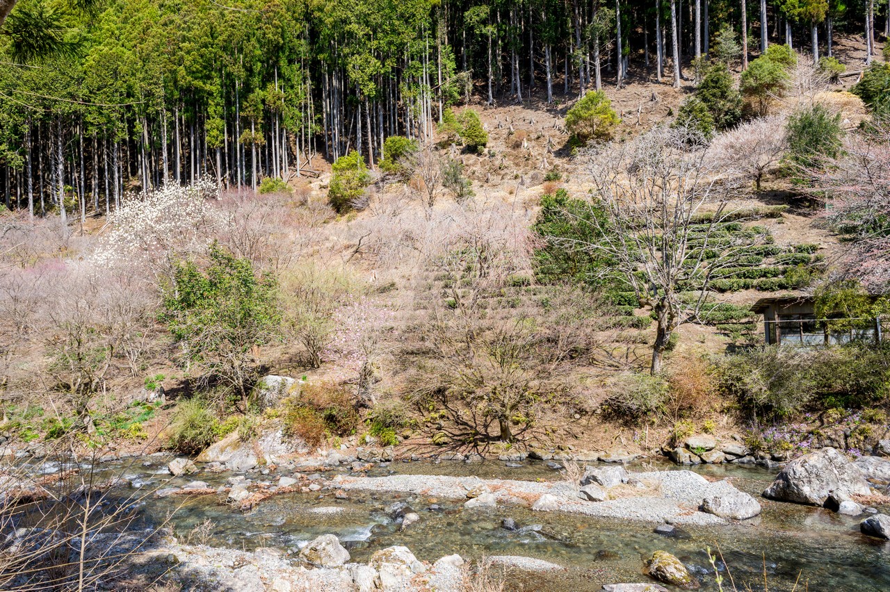 川沿いのほんの僅かなスペースしかない斜面に切り開かれた茶畑が多く目につきます。