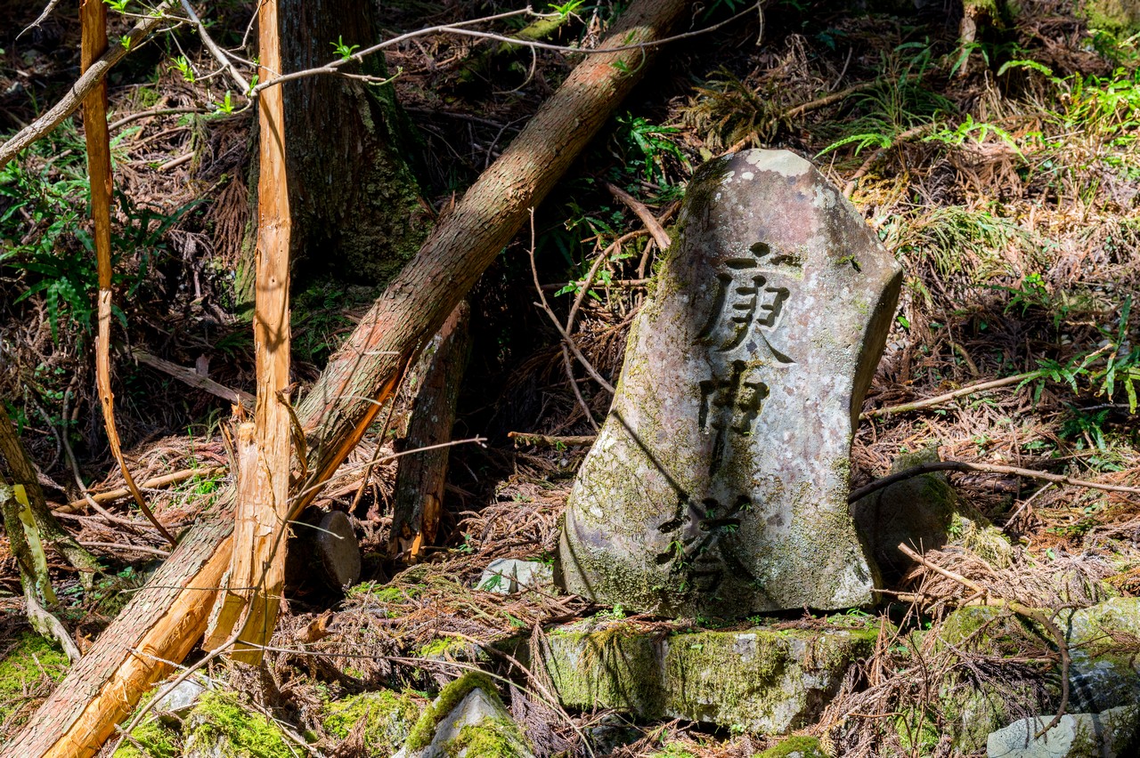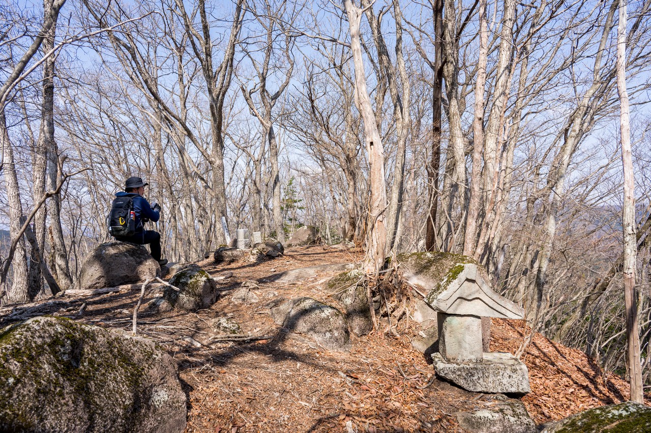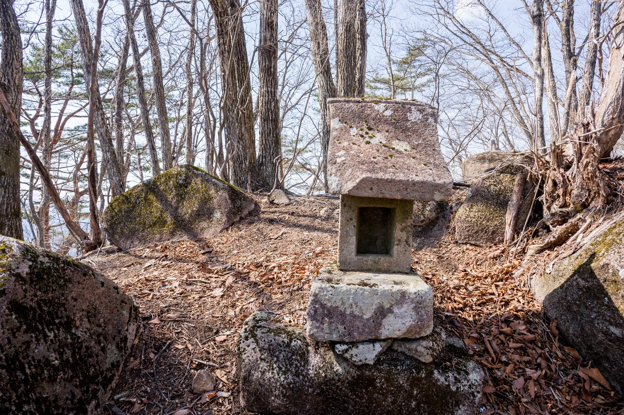 ここまで道らしい道もありませんでしたが、こうして山頂に小さな石の社がある辺り、古くから人の往来自体はある山だったのでしょう。