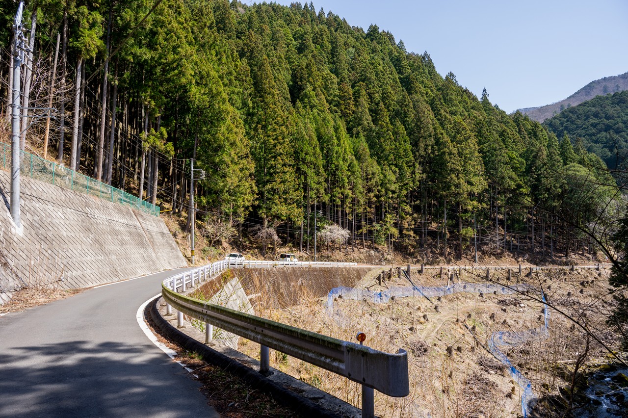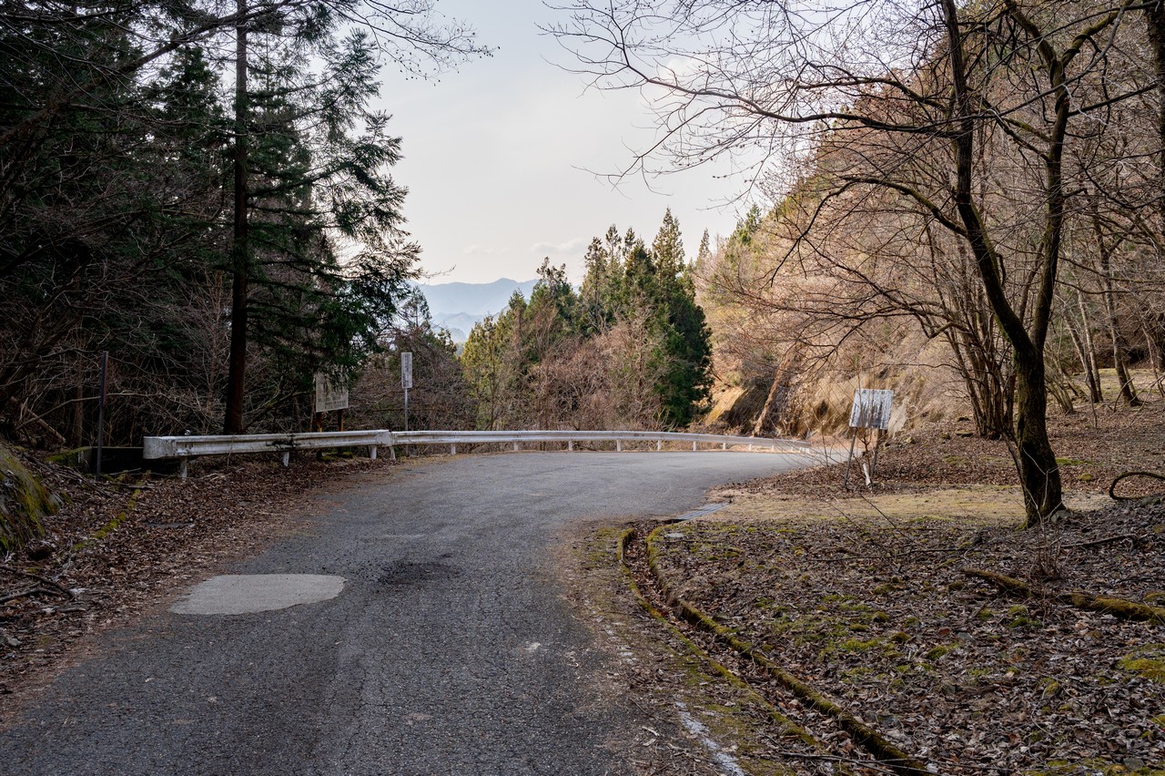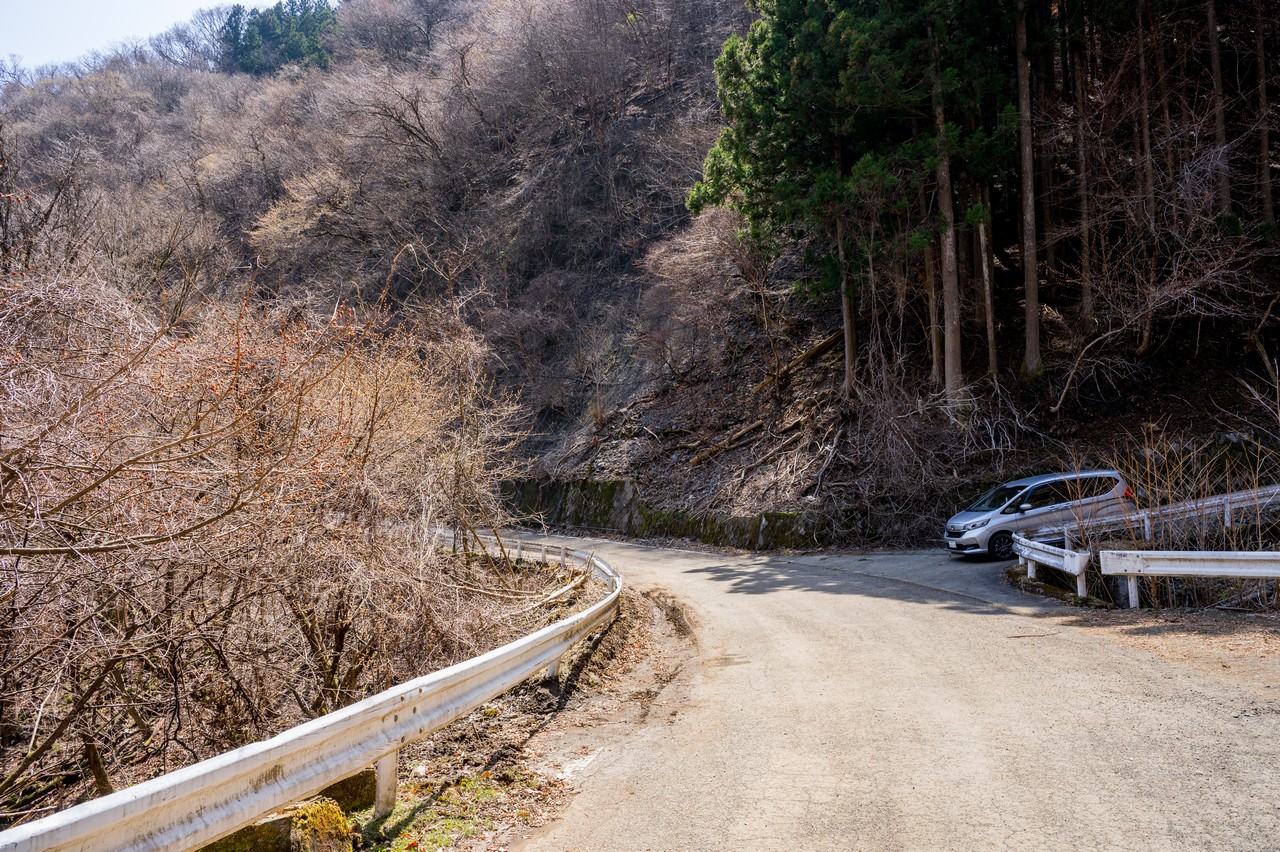 天満宮を過ぎるといよいよ道も細くなって、すれ違うのも困難な隘路となりました。屋敷山のミツマタ効果なのか交通量自体は多く、結構頻繁に車が通り抜けていきます。
