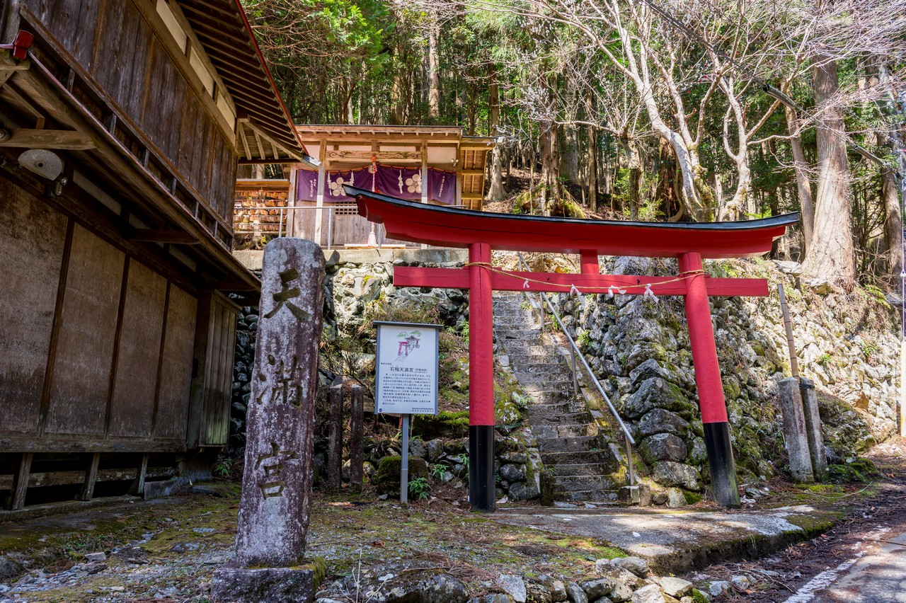 10時55分 石鴨天満宮まで歩いて来ました。この辺りが桐生川沿いにある集落の最奥地で、この先はもう人家の無いない山間部となります。