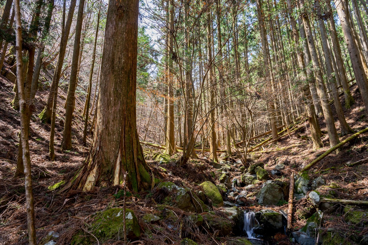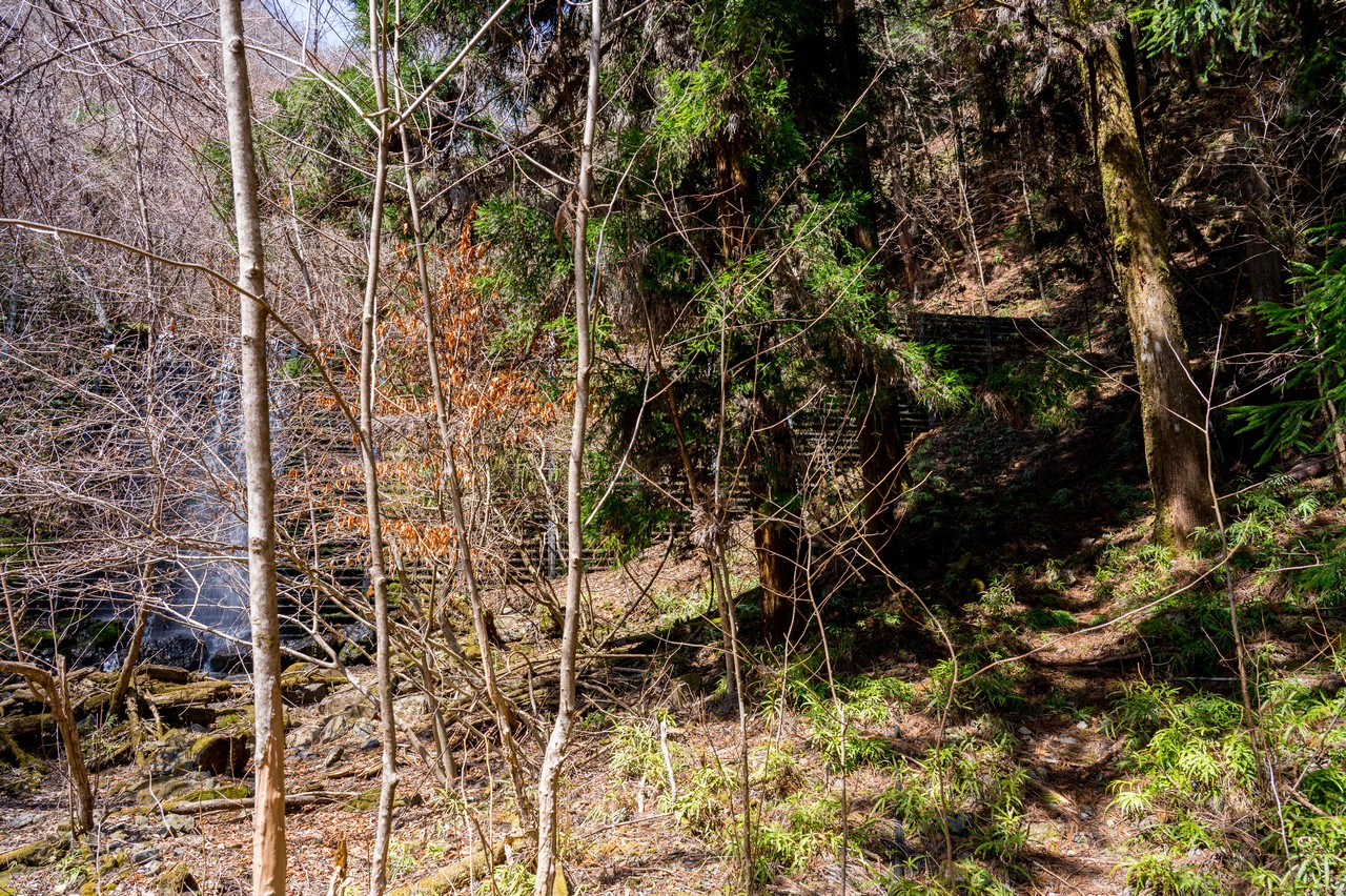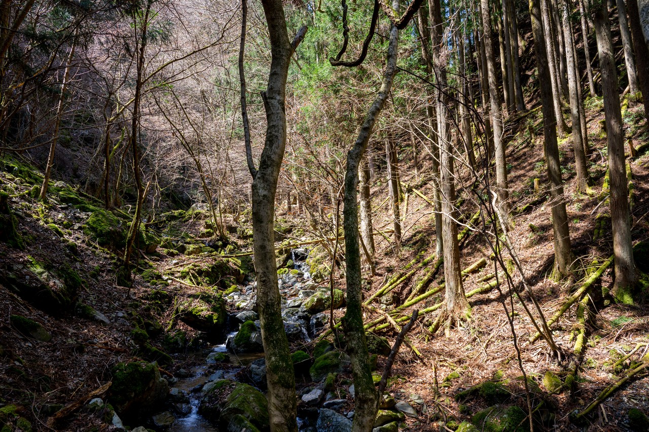 道は桐生川の谷に沿って続いています。桐生川は根本山と源頭とする渡良瀬川支流の川で、上流域に広がる森林地帯は桐生川源流林と呼ばれてトレッキングスポットになっています。