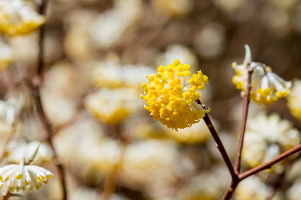 ミツマタの花は完全に開花しきると丸いボンボリ状になります。現状は満開になるまではもうあと少しと言ったところでしょうか。それでも十分に見頃であるとは言えそうです。
