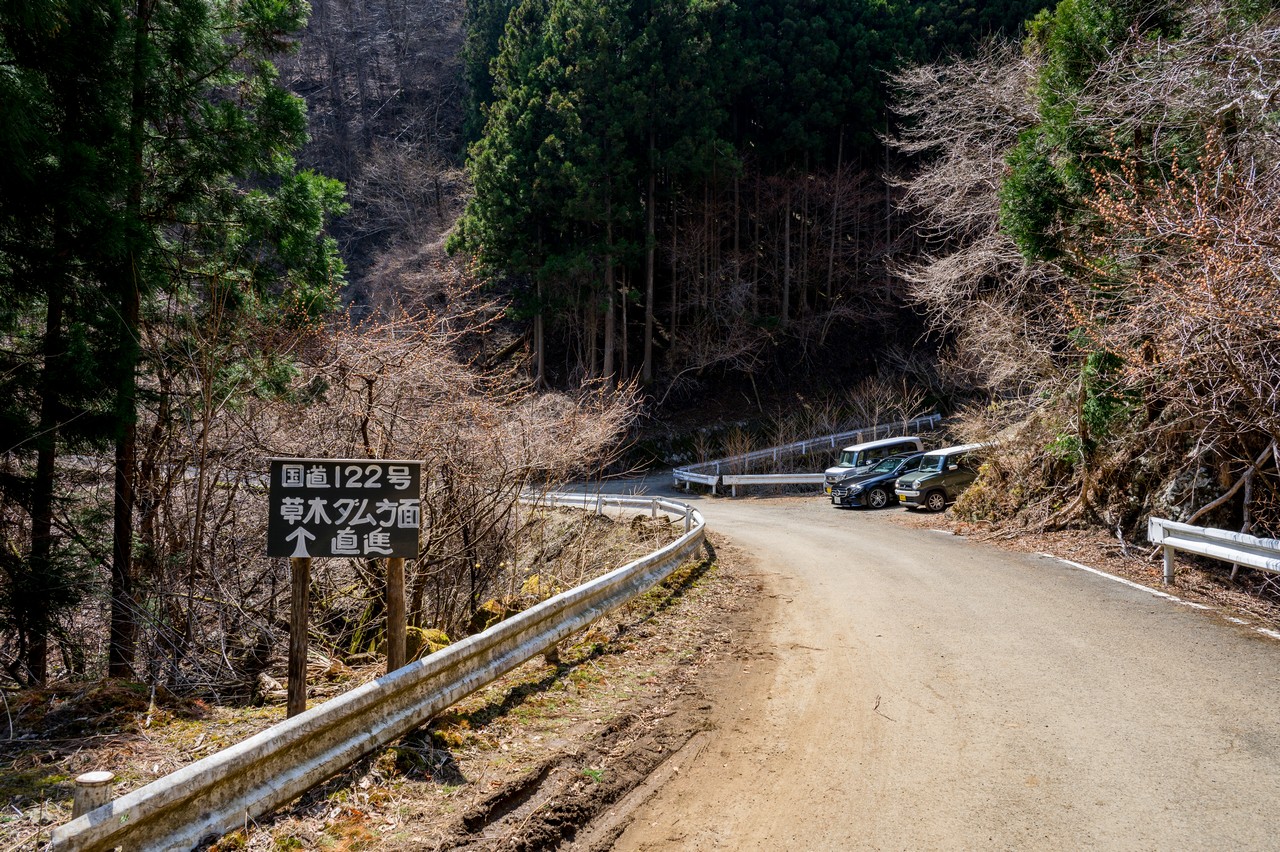右手に草木ダムの堤体が見えています。昔から暴れ川として悪名高かった渡良瀬川の洪水調節を主な目的として作られたダムですが、水没戸数が多かったため補償交渉で大揉めに揉めた曰く付きのダムです。