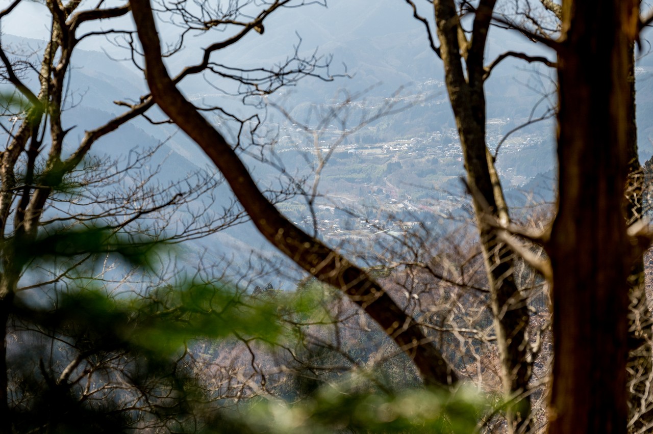 眼下に小さく、渡良瀬川流域の市街地が見えています。今からあの高さまで下りてゆかねばならない訳ですが、意外と遠そうです。