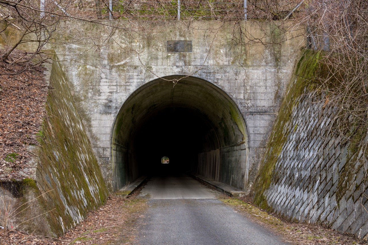 鞍部近くの尾根を三境隧道が貫いています。ちなみに屋敷山の入り口から舗装道路を道なりにずっと歩いて来ると、このトンネルの反対側に辿り着きます。