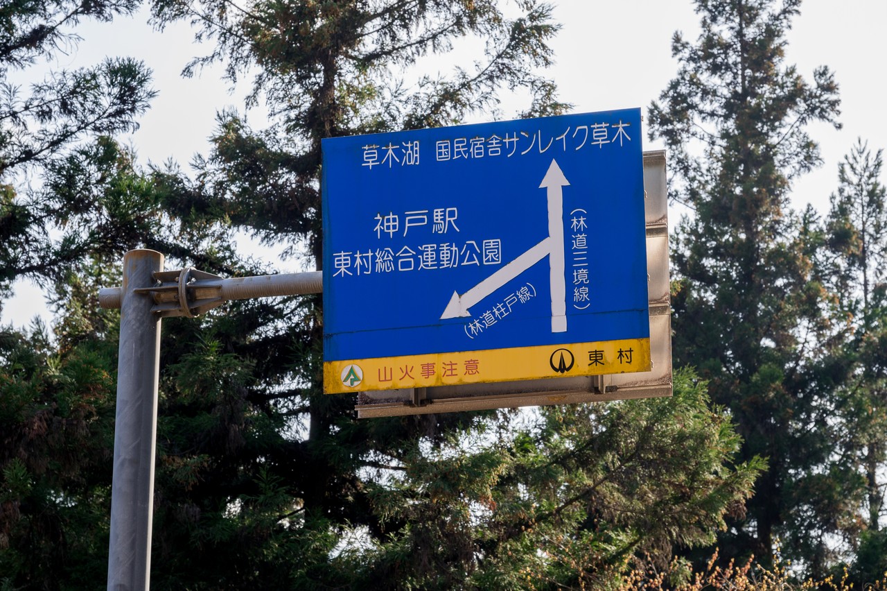 ここを直進すると、渡良瀬川のダム湖である草木湖に至ります。神戸駅方面へ下りたい場合は、ここを左折します。