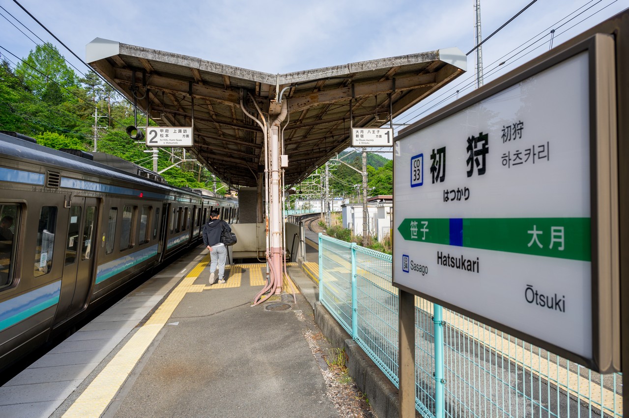7時 初狩駅に到着しました。中央本線1本でアプローチが出来る、圧倒的なお手軽さです。他の乗客たちの多くはもっと遠くを目指してるらしく、初狩駅に降り立った人はごく僅かでした。