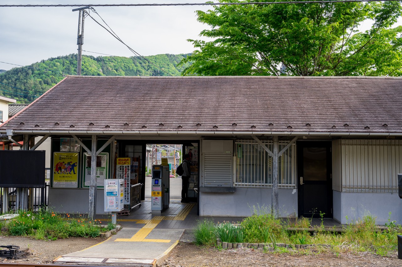小さな駅舎と簡易Suica改札機があるだけの無人駅です。坂の途中にある駅で、気が付きにくいですがホーム自体にも僅かに傾斜があります。