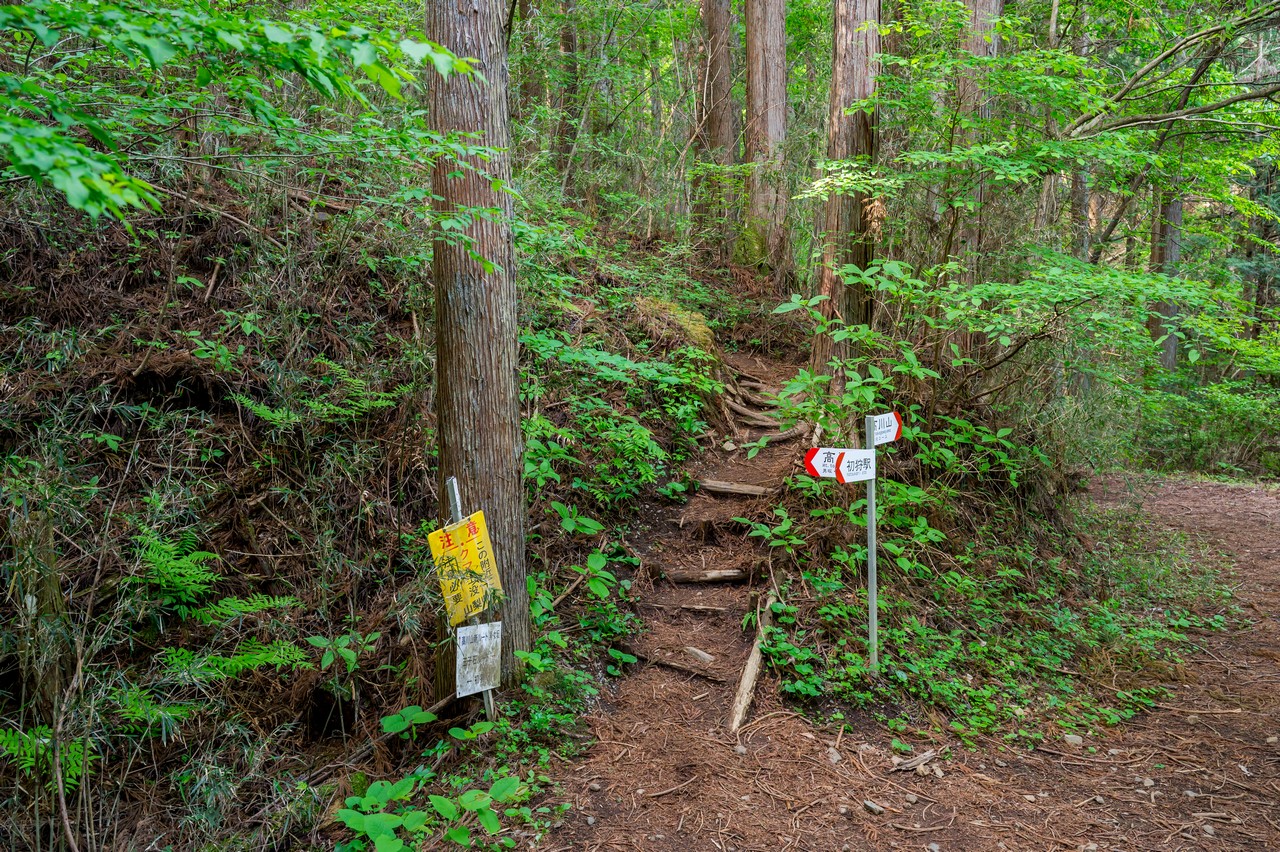 漠然とここが登山口だったように記憶していたのですが、道標に案内がある通りまだ先です。ピンクテープが巻かれていますが、登山道の目印ではないのでご注意ください。