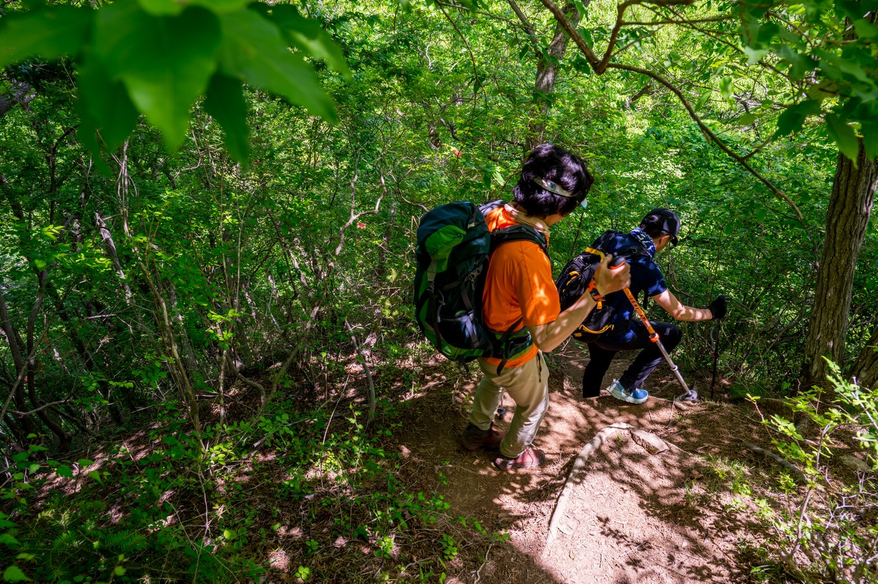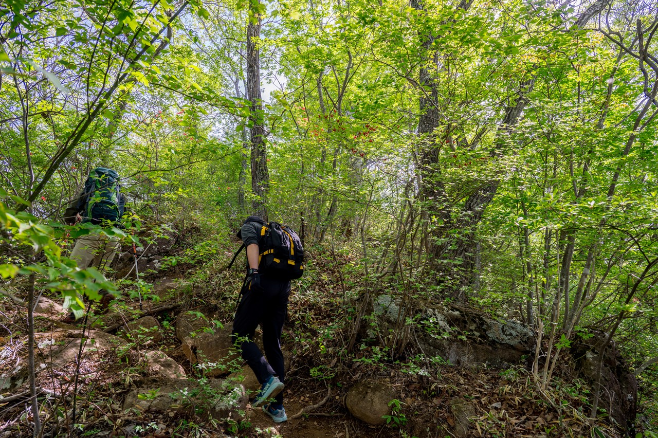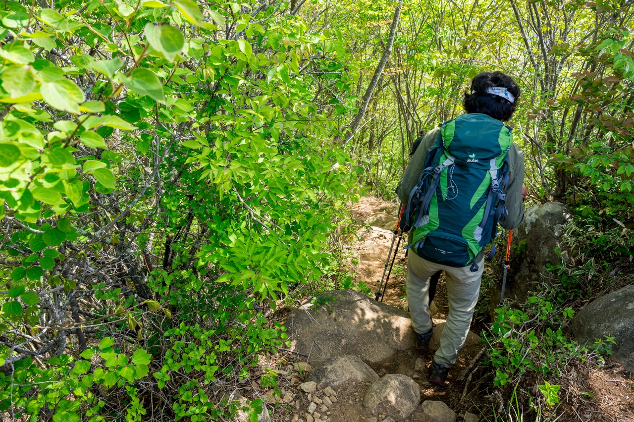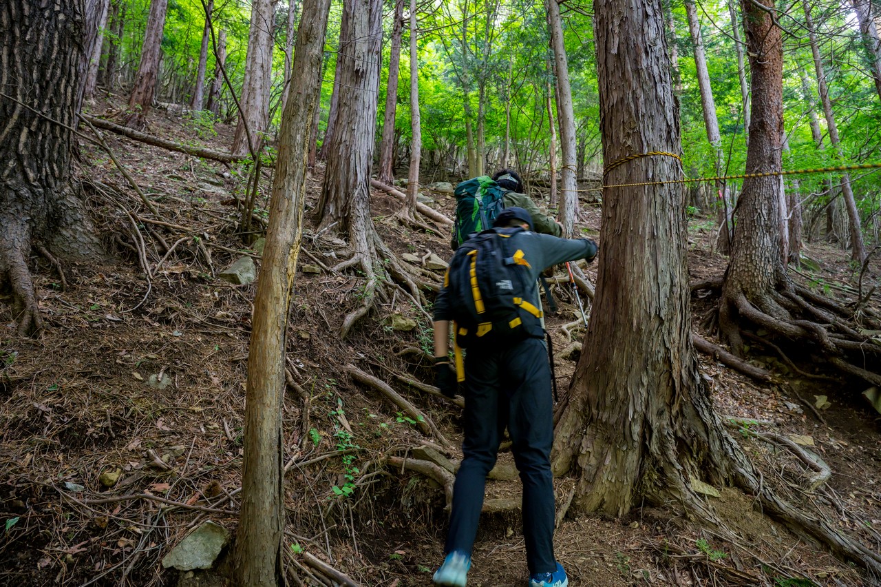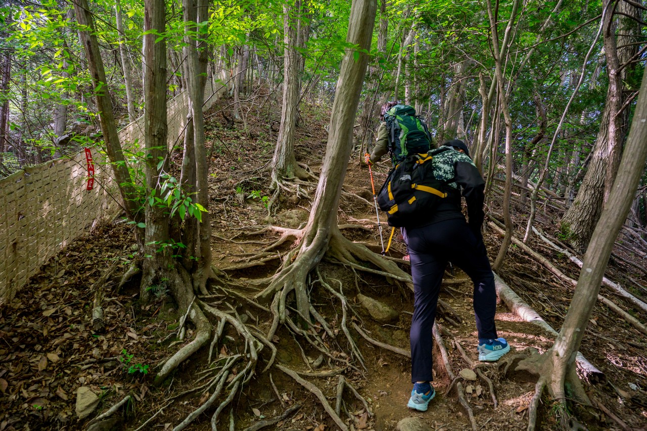 最初から結構な急登で、モリモリと標高を上げていきます。こう言う場所を登る際には、急登に挑む心得を忠実に守って粛々と登りましょう。