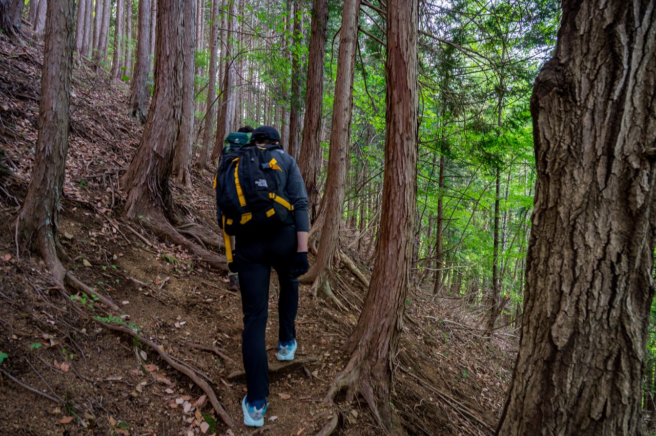 2.杉林の急登と、さほど緩くもない女坂を行く