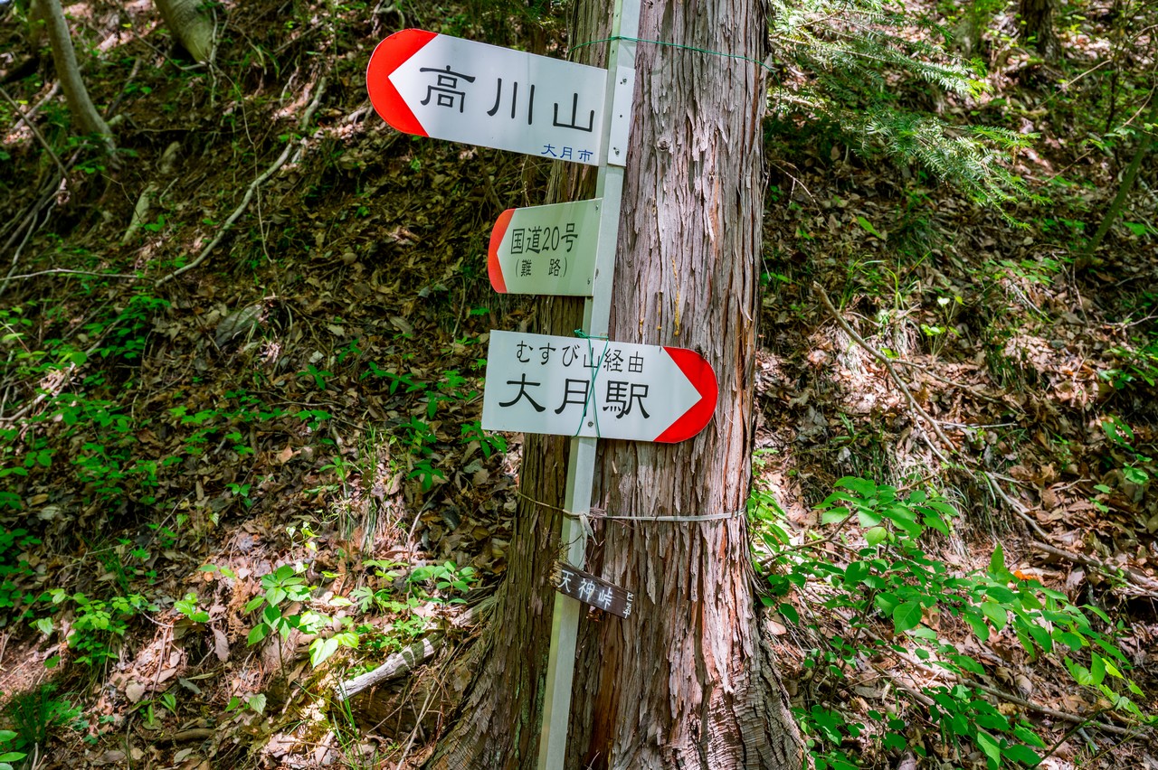 初狩駅より直接スタートして、高川山に登頂。下山はむすび山を経由して、大月駅へ直接下ります。高川山登山としては最も一般的であろう行程です。